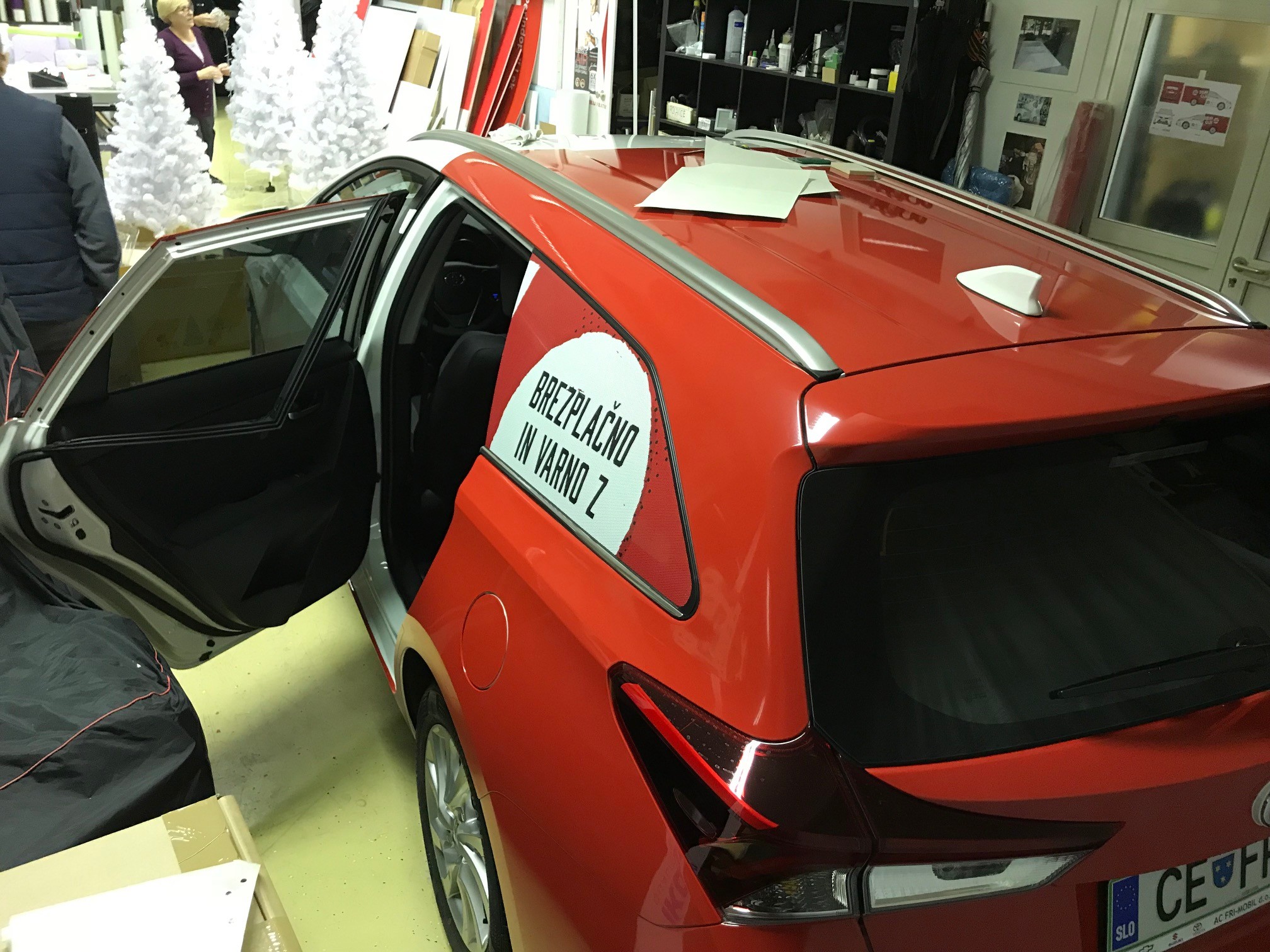 Še zadnje "nočne" priprave vozil Toyota (ura je kazala 1:47), ki jih bodo 9. decembra vozili "Heroji v pižamah". Vozila so z BDF ročico prilagojena za vožnjo invalidov "Herojev".